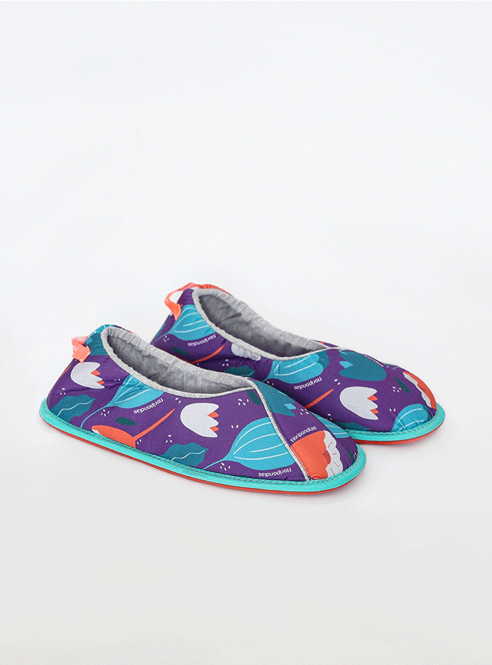 El material que contornea este producto es un bies de algodón y puede sufrir roturas con un roce excesivo o arrastre del pie sobre superficie rugosa. Éste es un calzado para el interior de la casa, no apto para actividades intensas.